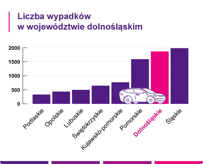 We Wrocławiu i okolicach dochodzi również do dużej liczby groźnych wypadków. Zgodnie z raportem policji w 2022 roku w woj. dolnośląskiem miało miejsce 1896 wypadków w których zginęło 138 osób, a 2201 zostało rannych. W 2022 roku w woj. Dolnośląskim doszło również do 639 przypadków kradzieży pojazdów, co stanowi ponad 10% wszystkich kradzieży odnotowanych w Polsce. Autocasco (Wrocław) pozwoli Ci spać spokojnie nawet jeśli zostawiasz samochód na niestrzeżonym parkingu.