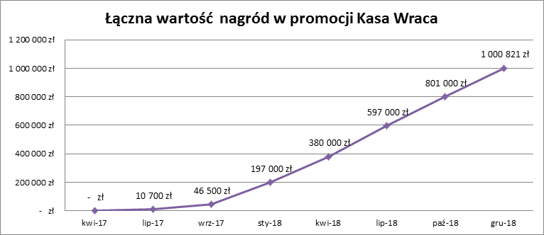 Wykres 1: Wartość nagród w promocji Kasa wraca od startu programu w 27 kwietnia 2017 r.