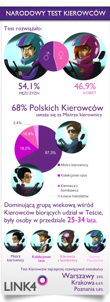 Jakimi kierowcami są Kasia Moś, Mateusz Krautwurst, dziewczyny z The Chance, Antek Smykiewicz i Ania, Adam i Kamil z Sound’n’Grace? Podobnie jak Fani LINK4 na Facebooku, gwiazdy z naszej najnowszej reklamy rozwiązały nasz Test Kierowców.