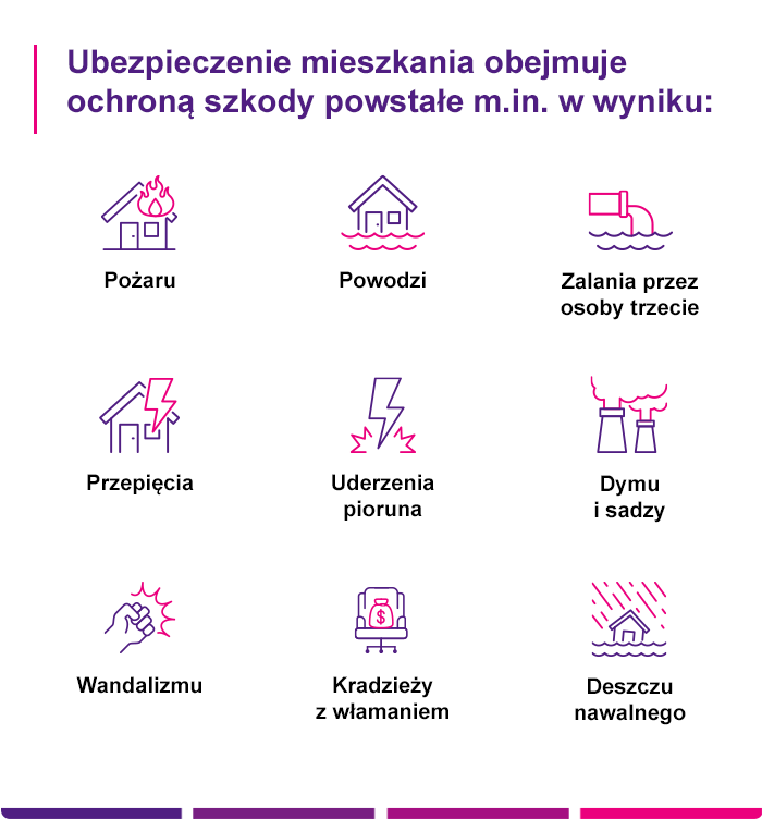 Zakup mieszkania to poważna decyzja, dlatego chroń swoje mienie przed niespodziewanymi zdarzeniami losowymi. W LINK4 kupisz ubezpieczenie nieruchomości od pożaru i innych zdarzeń losowych, od kradzież z włamaniem czy nawet od wszelkiego ryzyka. Warto rozważyć także rozszerzenie zakresu ochrony o ubezpieczenie od przepięcia, szyb od stłuczenia czy OC w życiu prywatnym.