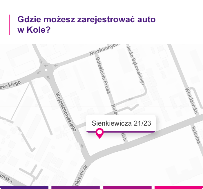 Rejestracja pojazdu w Kole odbywa się w Wydziale Komunikacji i Ruchu Drogowego Starostwa Powiatowego w Kole. Dokładny adres, pod który musisz się zgłosić to ul. Sienkiewicza 21/23, 62-600 Koło.