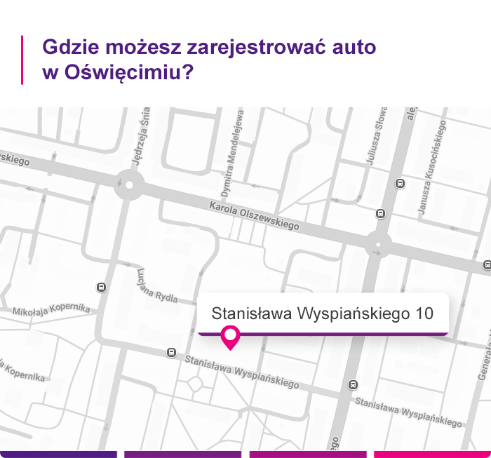 Rejestracja samochodu w Oświęcimiu odbywa się w Wydziale Komunikacji, który mieści się przy ul. S. Wyspiańskiego 10 w Oświęcimiu.