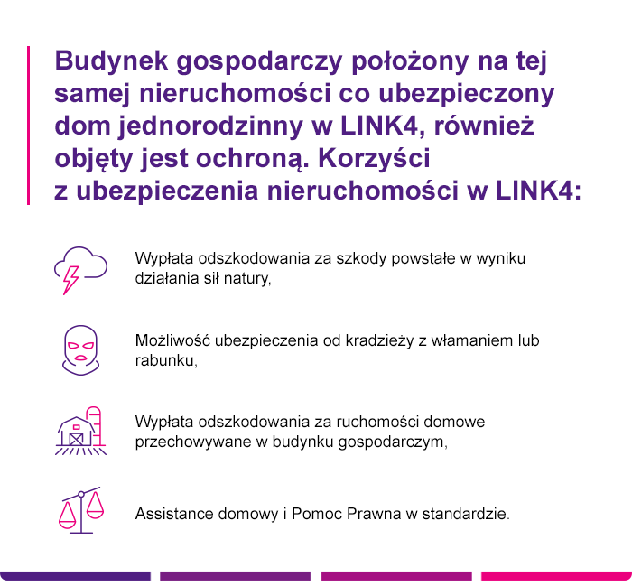 Poznaj spersonalizowane ubezpieczenie budynku gospodarczego w pakiecie DOM od LINK4. Skorzystaj z oferty i ciesz się pełną ochroną swojego majątku!