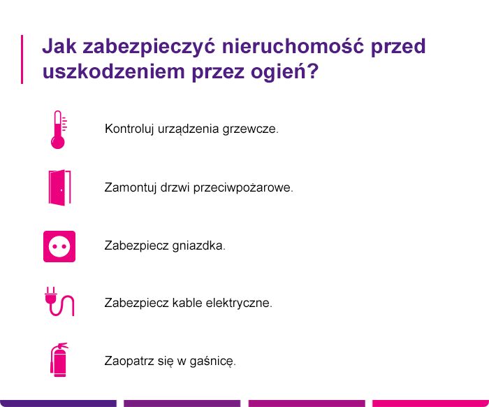 Jeżeli chcesz ubezpieczyć swój dom, mieszkanie czy znajdujące się w nieruchomości mienie na wypadek ognia, gradu, nawałnicy czy śniegu, sprawdź ubezpieczenie DOM w LINK4. Ochronę finansową przed skutkami pożaru zapewni Ci wariant ubezpieczenia nieruchomości od pożaru i innych zdarzeń losowych oraz ubezpieczenie mienia od wszelkiego ryzyka, czyli all risk.