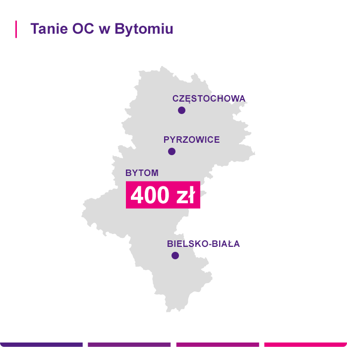 Ile na Śląsku kosztuje ubezpieczenie samochodu? Bytom to średniej wielkości miasto powiatowe, jakich jest w Polsce wiele. W porównaniu z miastami tej samej wielkości na Podkarpaciu czy w Świętokrzyskim oferuje inną cenę za ubezpieczenie OC. Bytom będzie różnił się także w kosztach polisy na tle miast z tego samego województwa: Katowic, Zabrza czy Rudy Śląskiej.  Skąd biorą się różnice, jeśli chodzi o ceny za ubezpieczenie samochodu? Bytom wyróżnia się na tle innych miejscowości, ale w jaki sposób? Wyjaśniamy tę zależność poniżej.