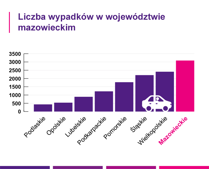 Brane są pod uwagę również statystyki dotyczące liczby wypadków w mieście lub okolicy. Istnieje zależność, że im więcej zdarzeń drogowych na ulicach danego miasta, tym składka na ubezpieczenie pojazdu jest wyższa. Jak prezentuje się sytuacja w Siedlcach? Województwo mazowieckie na tle pozostałych góruje pod względem liczby wypadków – w ubiegłym roku wyniosła ona aż 3086. Dla porównania województwo podkarpackie miało 1222 wypadki, a śląskie 2203.1 Można się więc spodziewać, że ubezpieczenia samochodowe Siedlce będą różnić się ceną od miast w tych województwach, w których wypadków jest mniej.