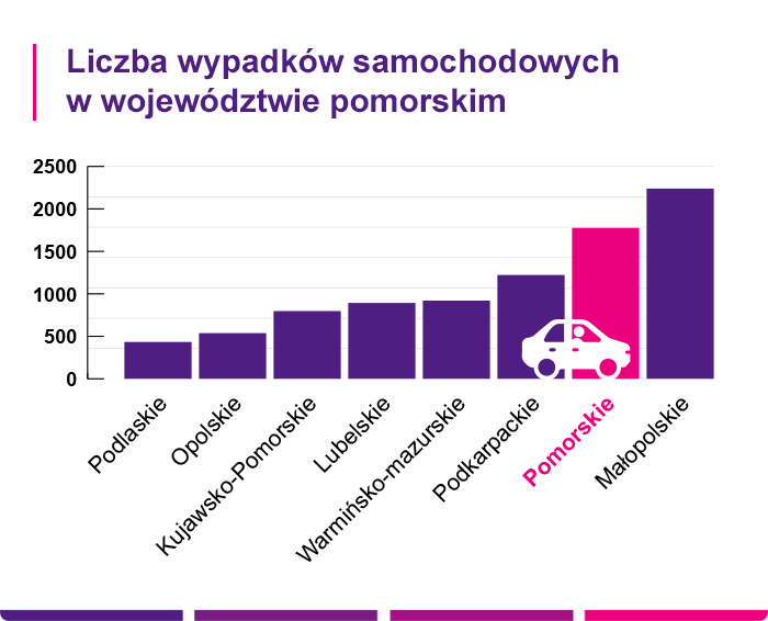 Jednym z czynników, które bezpośrednio wpływają na stawki, jest ryzyko. To na jego podstawie towarzystwo oblicza składki za ubezpieczenie samochodowe. Wejherowo leży w województwie pomorskim i właśnie ten region bierzemy pod uwagę, sprawdzając statystyki kolizji drogowych.