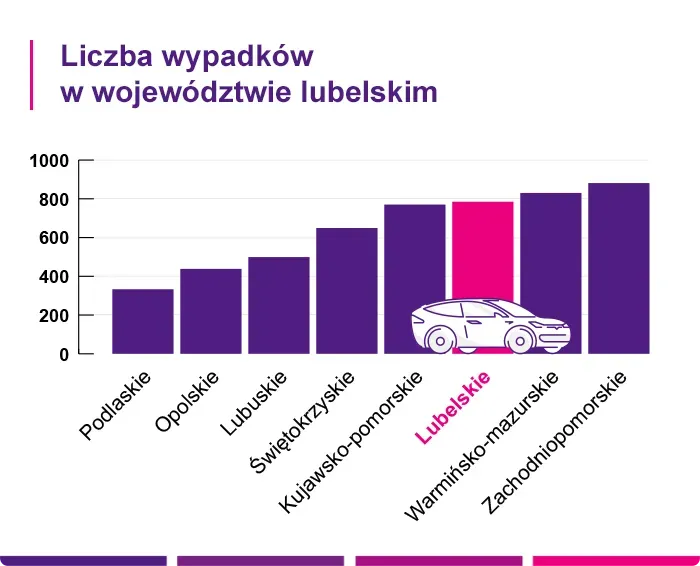 Według statystyk policji w 2022 roku w województwie lubelskim doszło do 785 groźnych wypadków, w których zginęło 121 osób, a 815 zostało rannych. Lubelszczyzna to dość spokojny region w Polsce pod względem wypadków drogowych. Najwięcej zdarzeń dochodzi na terenie województwa wielkopolskiego (2299 wypadków) oraz małopolskiego (2226 wypadków). Oznacza to, że OC Zamość może być tańsze, niż np. dla kierowców zamieszkujących Kraków. W tej małopolskiej aglomeracji dochodzi bowiem do większej ilości stłuczek i szkód parkingowych.