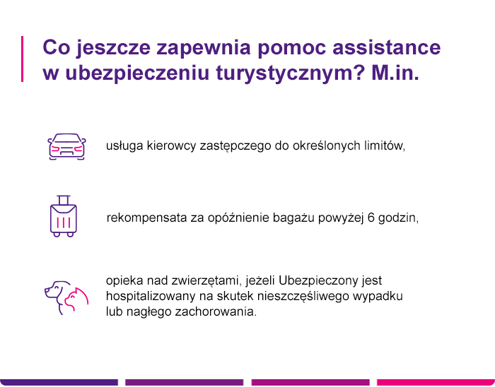 Aby czuć, że posiadasz kompleksowe ubezpieczenie turystyczne w czasie podróży zagranicznej, do ubezpieczenia kosztów leczenia i pomocy assistance, dobierz także: